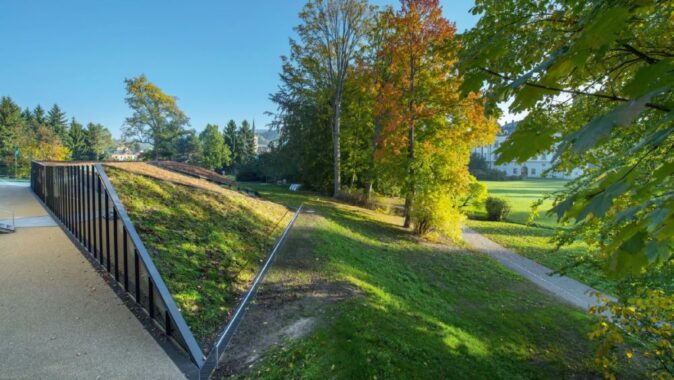 Místo pro stavbu bylo určeno v zámeckém parku vedle administrativní budovy