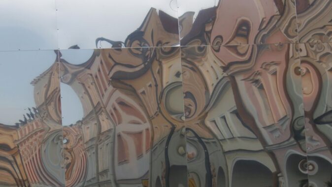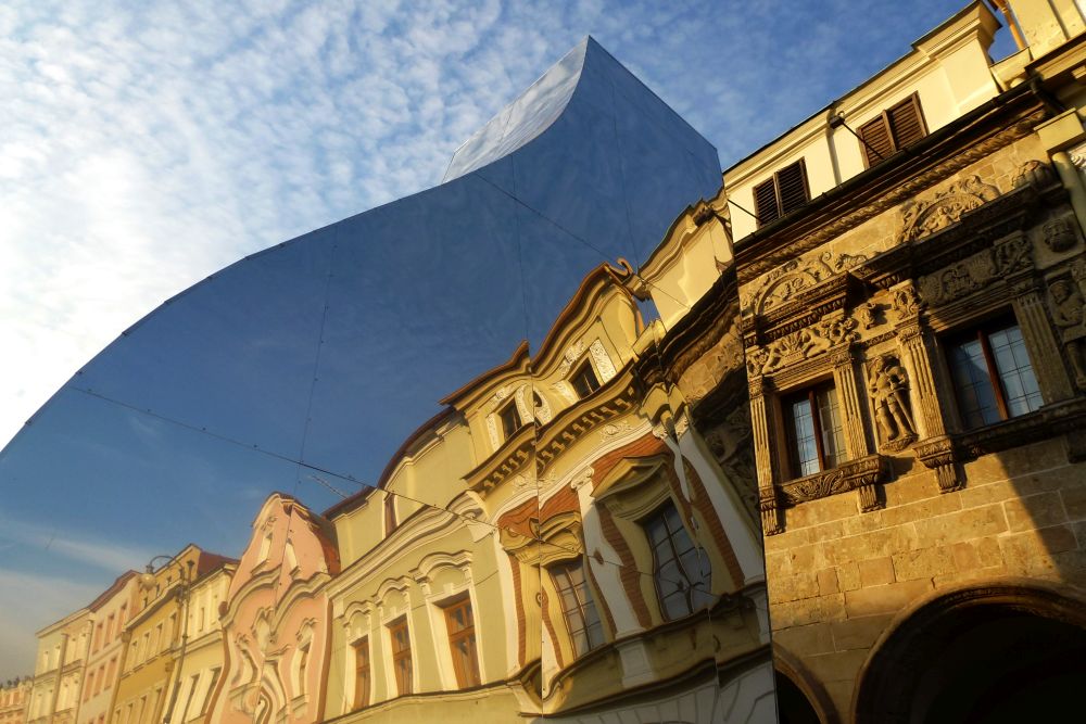 Ve skutečnosti nic nezmizí, tím, že zrcadlí své okolí, to bylo prokázáno realizacemi již před 30 ti lety, naopak nepatřičnost takové stavby je ještě větší a do historického jádra vypálí materiálovou díru.