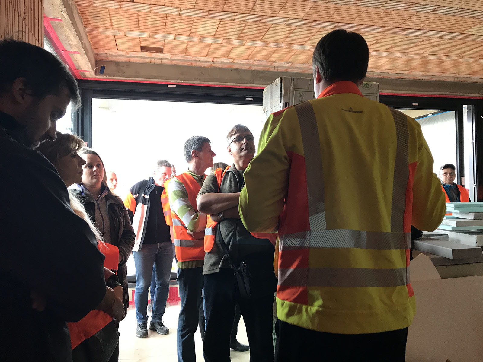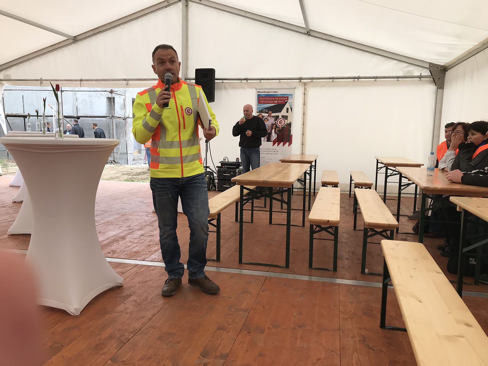 Budoucí majitelé e4 domů se mohli dne 23. 10. 2019 seznámit s Programem e4 přímo na dokončené hrubé stavbě prvního vzorového domu e4. K dispozici jim byli stavební odborníci značek, které se staly partnery vzorového e4 domu. Společnost Baumit připravila přehledné vysvětlení pravidel pro využití venkovních omítek. Mezi témata týkajících se zdicích materiálů patřily optimální konstrukční řešení systému Porotherm a řešení konstrukčních detailů programu We4d. Společnost Vekra seznámila přítomné stím, co je důležité při výběru oken. Jak vybrat správnou střešní krytinu a přínosy moderní střešní izolace Tondach iRoofse pak stalo tématempro produktového manažera značky Tondach.