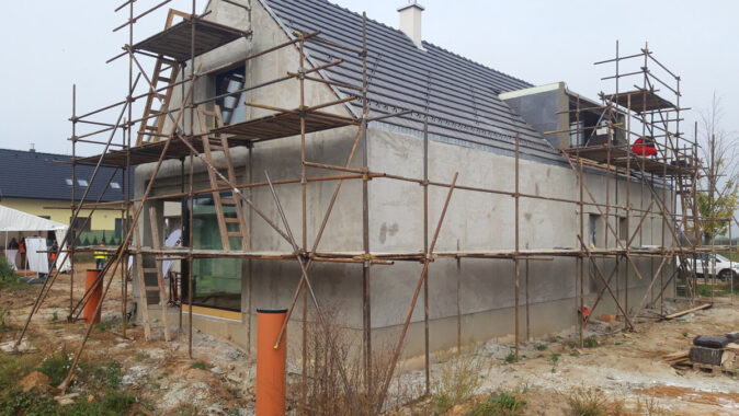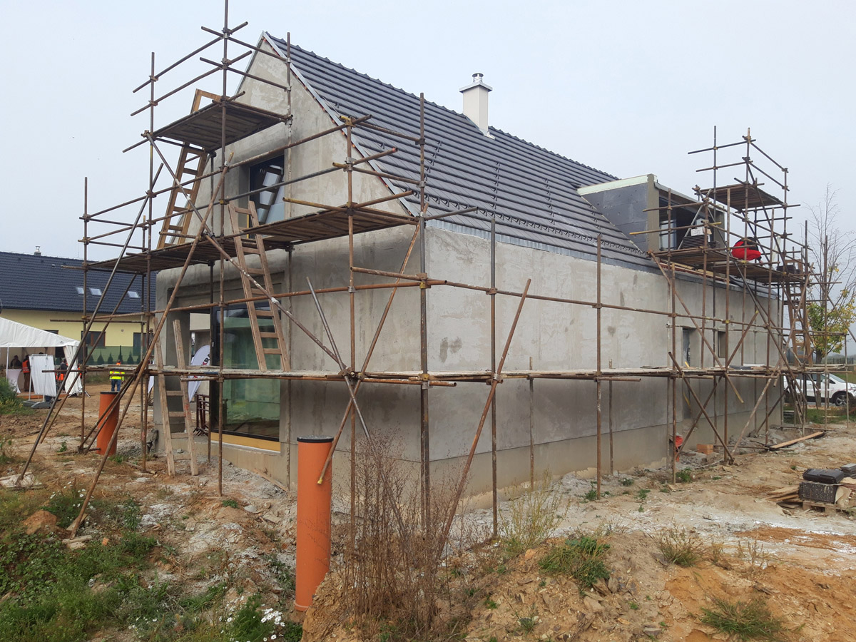 Hrubá stavba prvního vzorového domu e4: