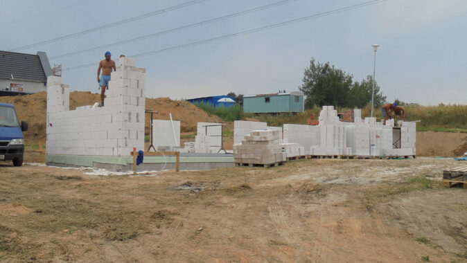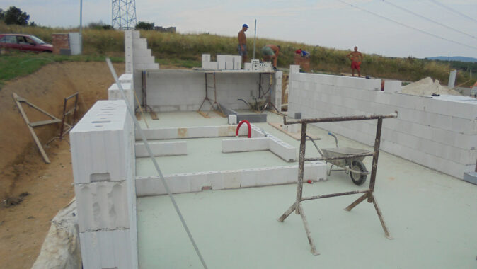 byly obvodové stěny vyzděny z bloků Sendwix tl. 17,5 a 24 cm dodávaných