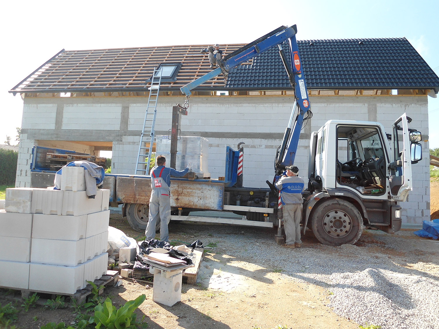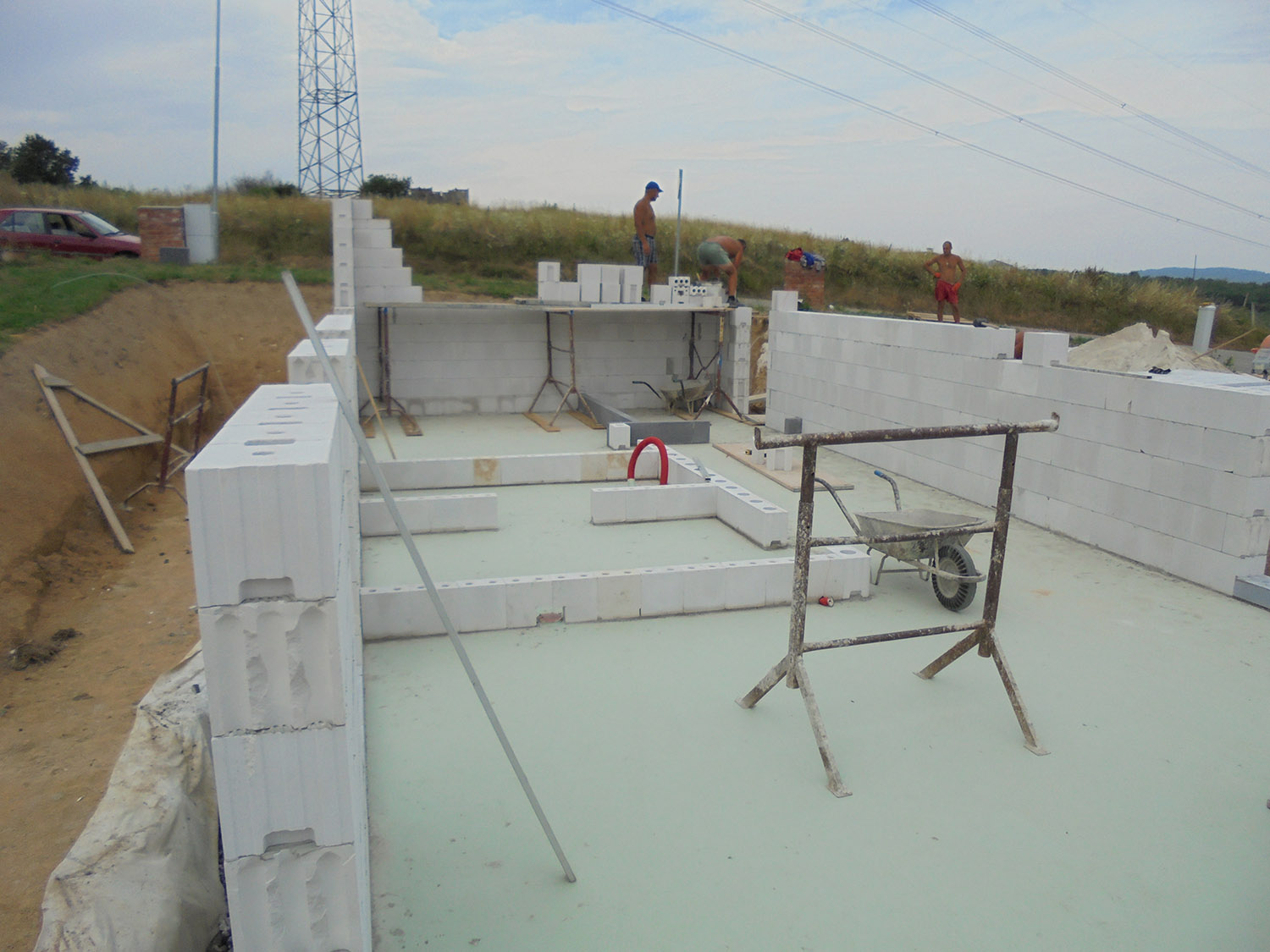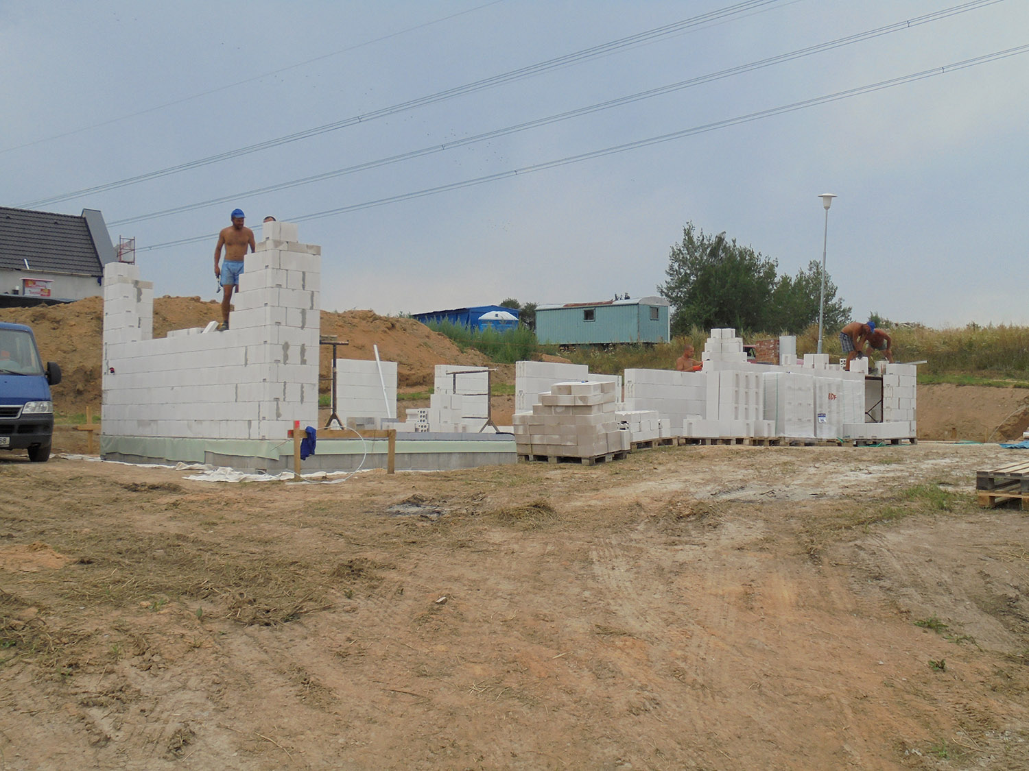 byly obvodové stěny vyzděny z bloků Sendwix tl. 17,5 a 24 cm dodávaných