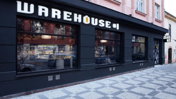 ulice obrací velkými výklady obchodní prostor, v suterénu je místo přímo určené