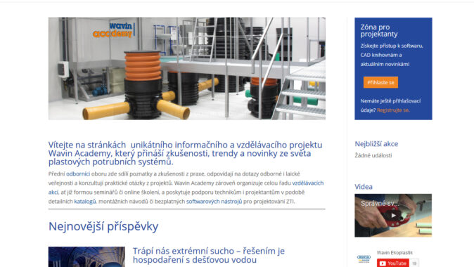 jednotlivých produktů. Uživatelé, kteří se na stránky Wavin Academy
