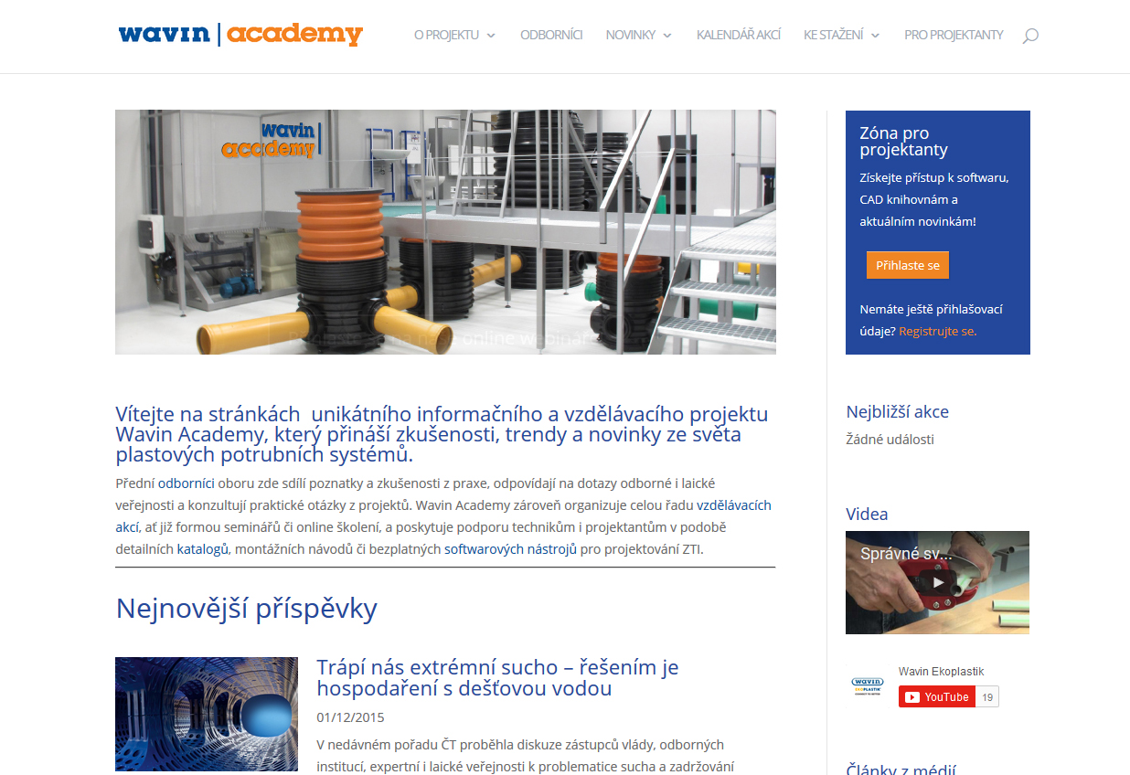 systémů, spouští na internetu ojedinělý informační a vzdělávací projekt Wavin Academy.