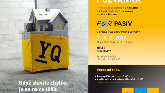 Na sedmém ročníku veletrhu For Pasiv 2019 se od 7. do 9. února na pražském výstavišti PVA Expo Praha představí nejnovější řešení nízkoenergetických, pasivních a nulových staveb. Společnost Xella najdete v hale 2 a můžete si prohlédnout stavební fragment, na kterém vám techničtí poradci předvedou kompletní systém Ytong, vápenopískové zdivo Silka a zateplení Multipor. Po dobu veletrhu je možné využít výjimečné akční nabídky zakoupení materiálu.
