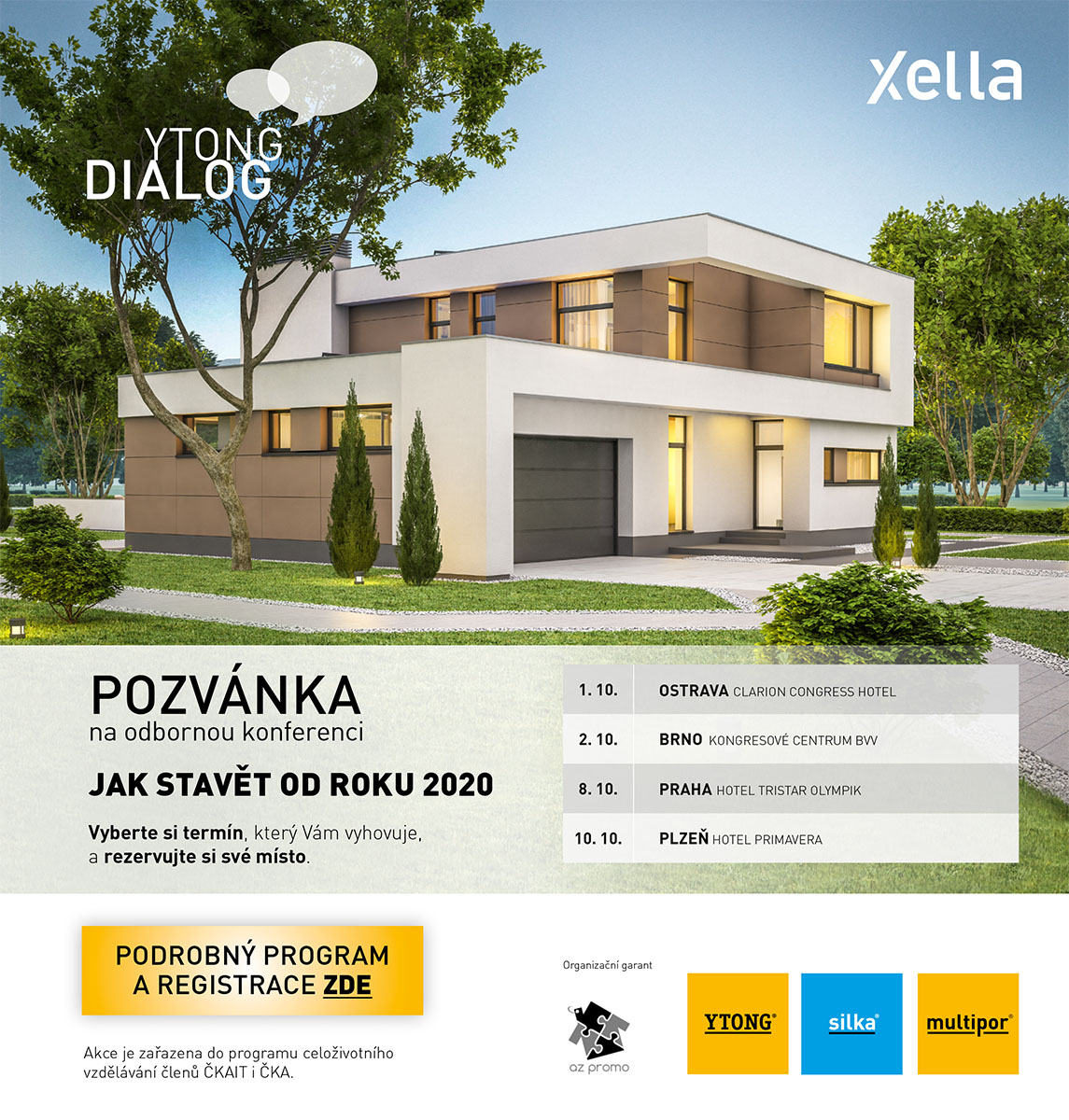 Letošní Ytong Dialog se koná v první třetině října v Praze, Brně, Ostravě a Plzni. Tématem bude zejména změna po novelizaci 2020, která přináší povinnost stavět domy s téměř nulovou spotřebou. Hosty budou odborníci z řad energetických specialistů, projektanti a stavební inženýři, kteří mají s výstavbou domů podle nových kritérií již praktické zkušenosti.