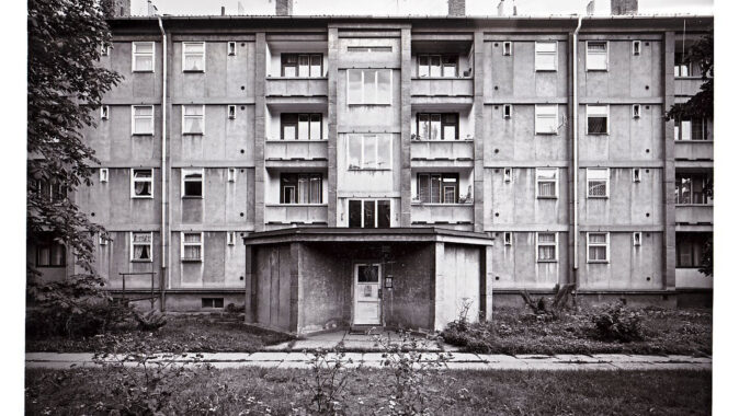 objevuje jiná, věcnější technika. Stavby jsou zachycované ze stativu, v