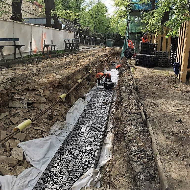 zaručí při správné instalaci pevnou konstrukci vsakovací galerie, kde se voda
