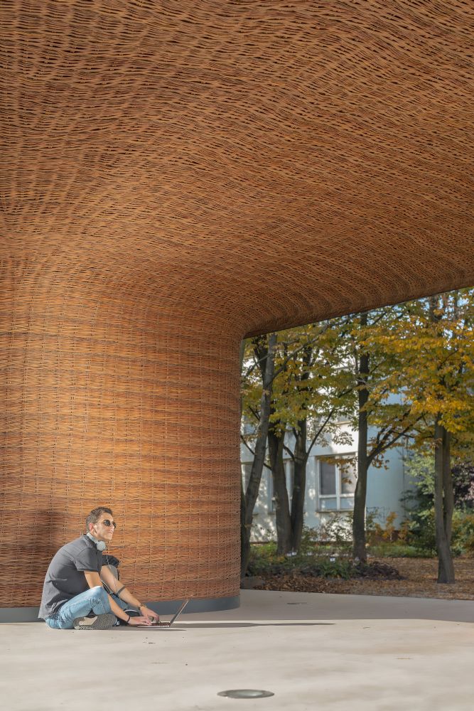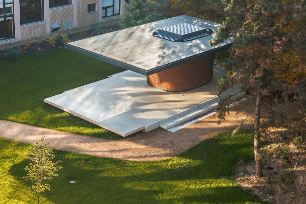 Na tento silný architektonický odkaz jsme chtěli navázat u všech našich realizací, které jsme měli příležitost pro Provozně ekonomickou fakultu ČZU vytvořit – rekonstrukce vstupního přístřešku a vstupních prostor hlavní budovy, rekonstrukce interiérů přednáškového pavilonu, dostavba spojovacího a společenského objektu atria, kterým studenti získali přístup do severní části pozemku. Tento prostor jsme přizpůsobili pro účely pobytu studentů pomocí zahradních úprav a do středu zahrady jsme umístili zahradní altán.