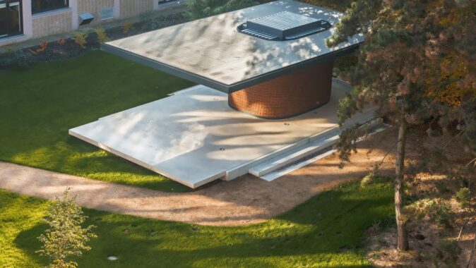 postaven ve stylu, odkazujícího se na Baťovský funkcionalismus. Vyznačuje se