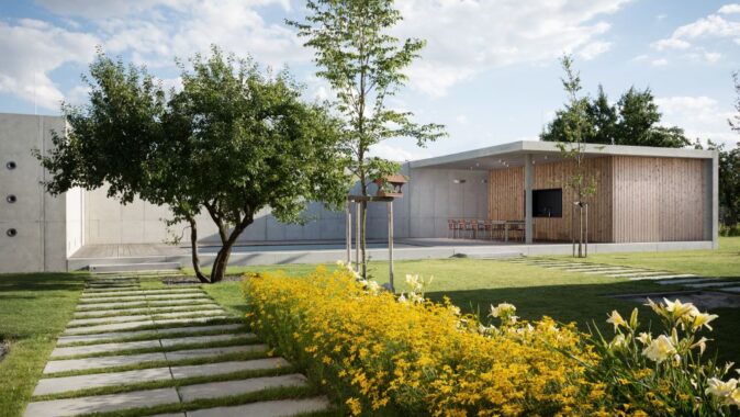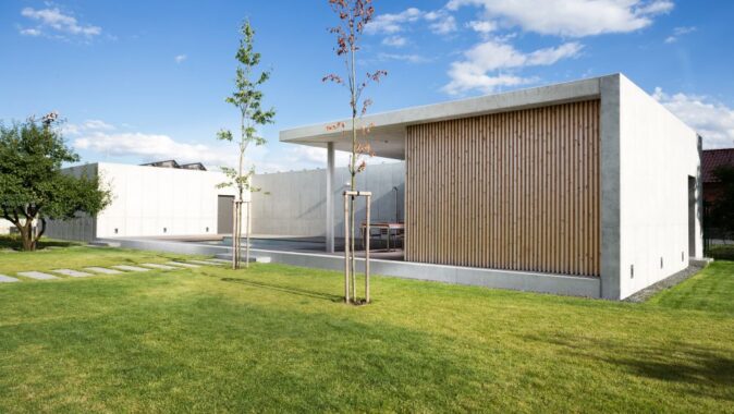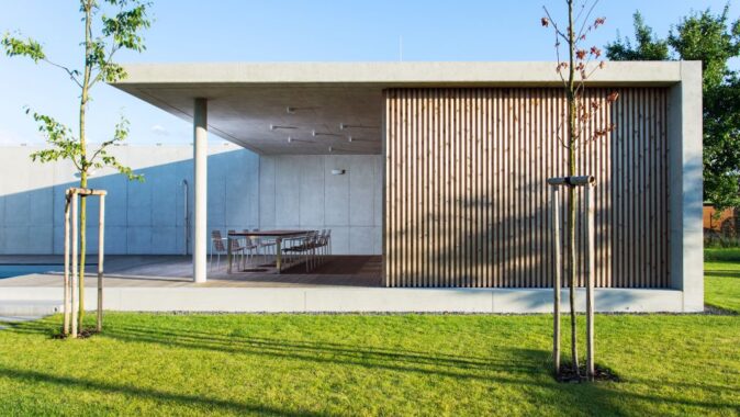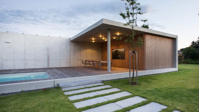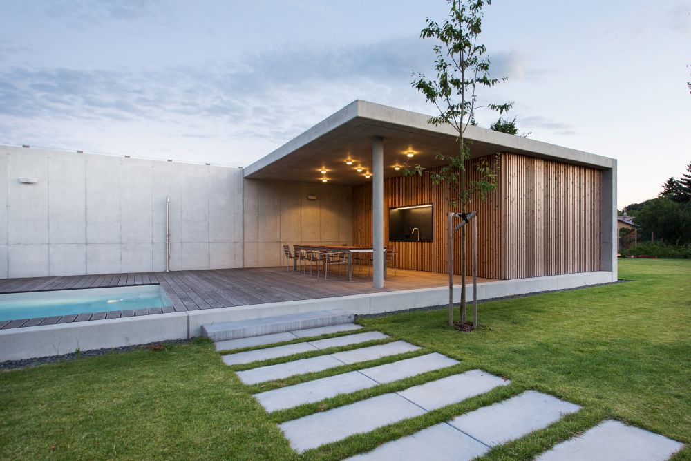 Zahradní pavilon byl realizován jako druhá etapa rodinného