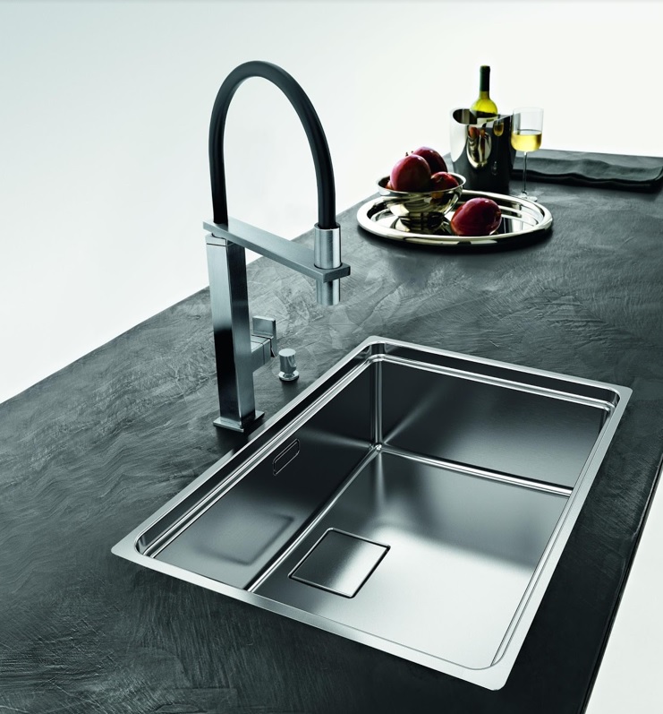 Industriální kuchyně nemusí být jen studeným prostorem plným betonu. Významnou roli hraje kov, který perfektně propašujete do designu dřezové baterie a dřezu. Ty perfektně doplní vhodně umístěné dřevo, popřípadě odkryté cihlové stěny. Myslete i na to, že veškeré vybavení by mělo splňovat určité barevné odstíny, což jsou v případě industriálního stylu monochromatické barvy. Sáhnete-li po šedé, černé, rezavé, béžové a jejich metalických variantách, neuděláte krok vedle.