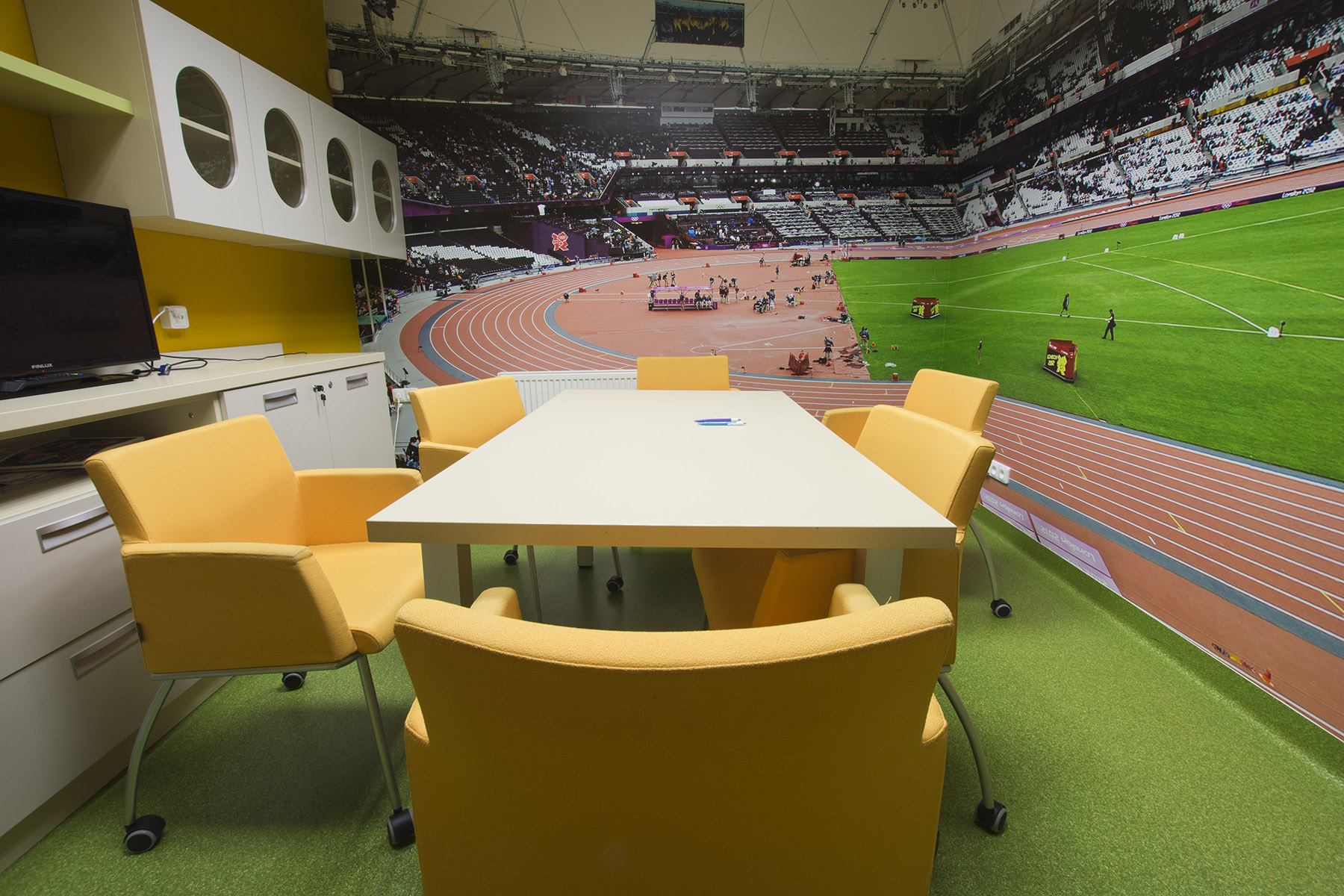 v podobě materiálu Mural Calypso, což je PVC krytina použitelná díky