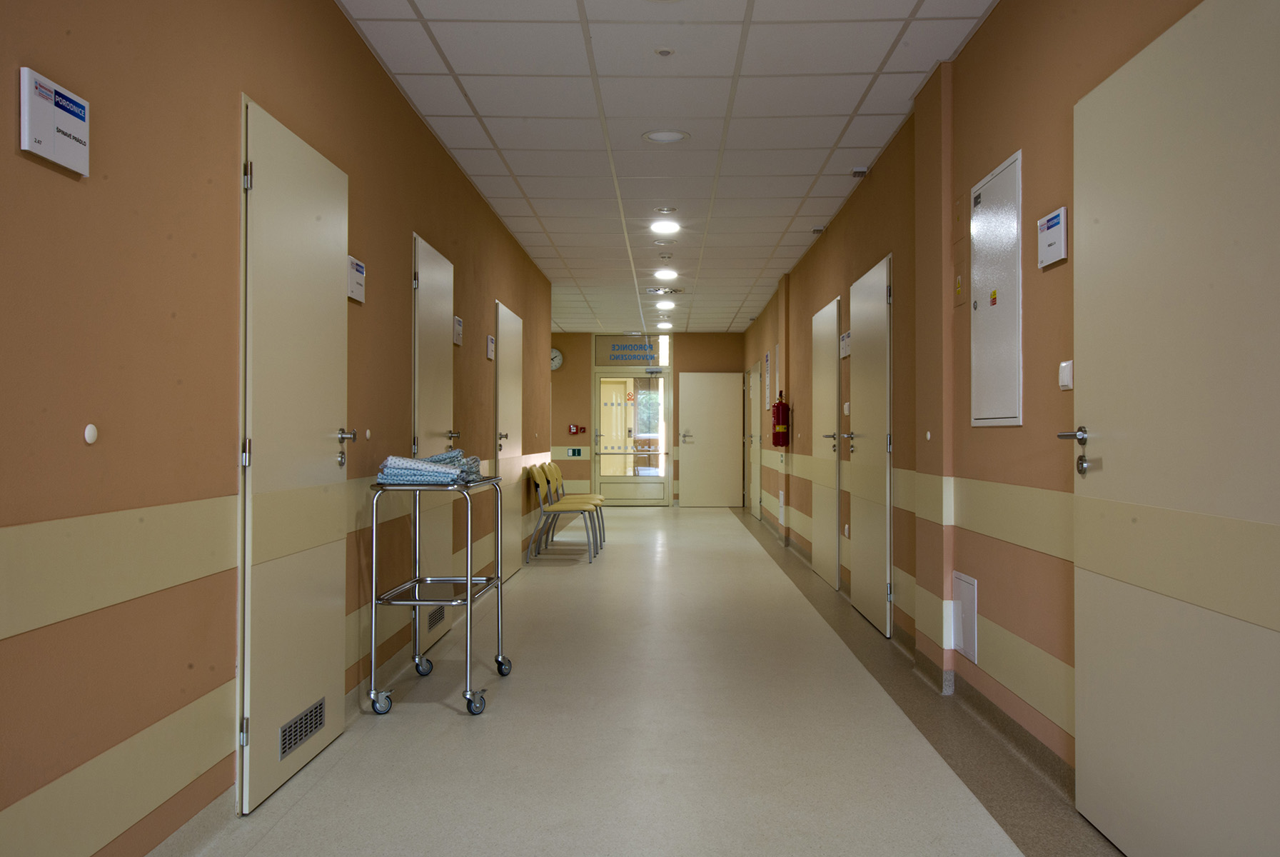 barev). Zde, na porodnické klinice se ve vyšší míře uplatnil obklad stěn