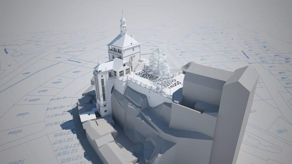 Komplex chystaného muzea zahrnuje Zámeckou věž samotnou, Zámecký výtah a plato před Zámeckou věží