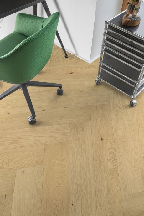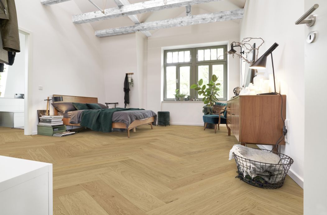 Francouzské zámky a venkovská sídla inspirovala názvosloví nové kolekce třívrstvých dřevěných parket KPP Château Herringbone (Dub Chambord, Dub Apremont, Dub Clagny, Dub Crussol, Dub Anjony, Dub Aguilar). „Dnes je číslem jedna čistě přírodní dub, žádné tmavé barvy, a nová kolekce tyto nejatraktivnější odstíny nabízí. A k tomu ještě bělené duby, které jsou zajímavou alternativou. Přírodní vzhled zdůrazňuje kartáčování, mikrozkosené V drážky po celém obvodu parkety i povrchová úprava v podobě olejů nebo matného laku,“ představuje zámeckou kolekci Aleš Viktorin, vedoucí regionálního prodeje společnosti Kratochvíl parket profi, a potvrzuje oprávněnost vznešeného pojmenování: „Atraktivitu zvyšuje nadstandardně velký formát 725 x 130 mm oproti klasickému 470 x 70 nebo 490 x 70. Podlaha v tomto velkém formátu působí luxusněji. Výhodou je i zámkový spoj, podlaha se nemusí lepit, stačí ji položit plovoucím způsobem.“