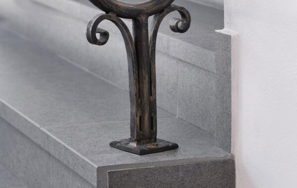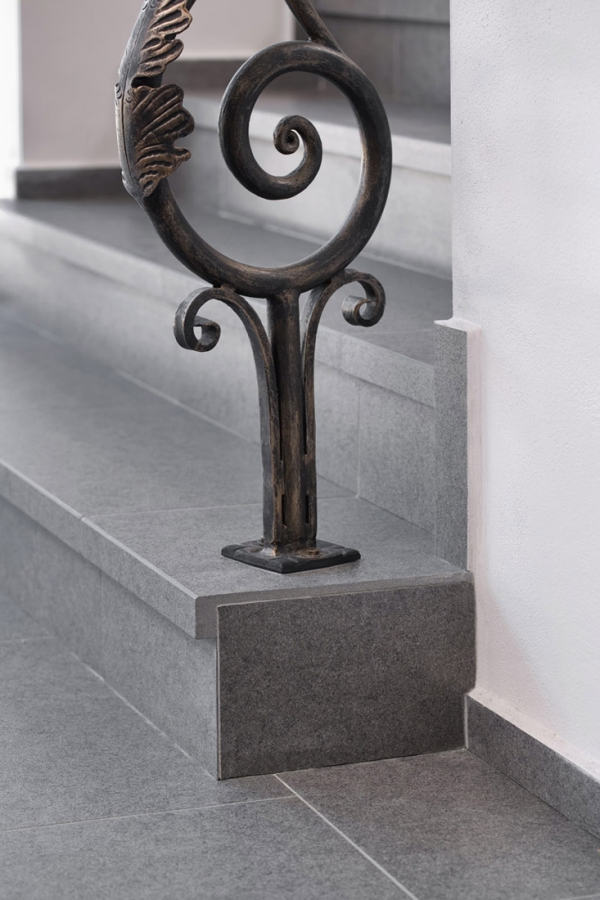A tak reprezentativní vstupní schodiště pokryly schodové tvarovky ze série Rock (RAKO) v odstínu šedé žuly s probarveným střepem a homogenní kresbou a glazované slinuté dlaždice ve formátech 30×60 a 60×60 cm z téže řady se rozběhly i po chodbách hotelového zámku. „Oslovila mě barva a jemná, přirozená struktura dlažby. Není výrazná, při tom má svou hloubku, textura se neopakuje a výsledný dojem je elegantní,“ říká Ing. Zsolt Papp a Ing. Ľudovít Bulla, technický poradce pro značku RAKO, který měl projekt za společnost Lasselsberger na starosti, ho doplňuje: „Dovolím si tvrdit, že se jedná o největší počet schodových tvarovek dodaných na jednu realizaci v rámci Slovenska, protože tam nebyly dva stejně široké schody, každá dlaždice se musela jednotlivě dořezávat.“