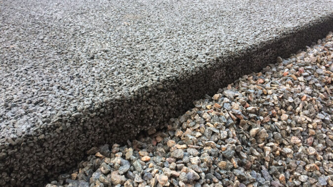 chůzi na boso, drcené kamenivo má lepší protismykové vlastnosti. Drenážní beton