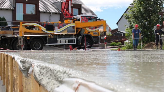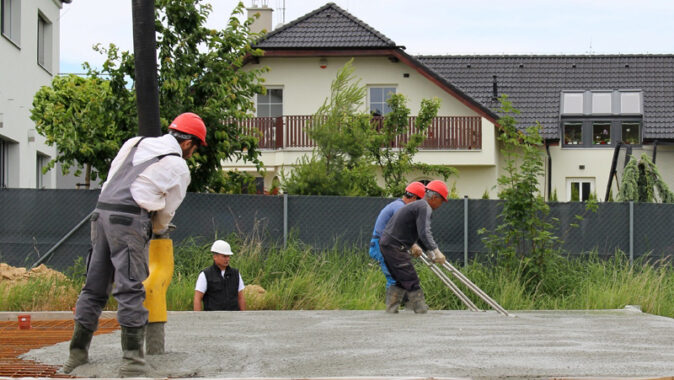 deska pro budoucí obchodní centrum ve Slavkově u Brna. Uložení betonu probíhalo