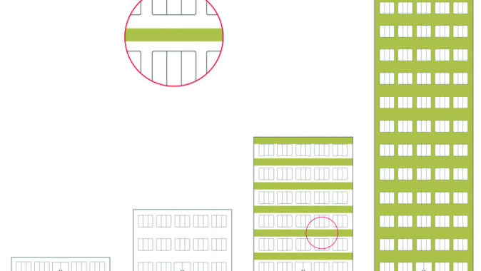 podlažím, včetně nejvyššího podlaží. Norma rovněž uvádí požadavky na různé