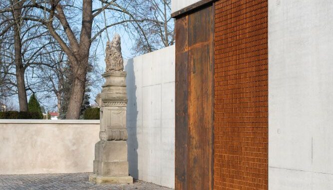 kde stávala historizující márnice z 19. století. Byla kultivovanou hřbitovní