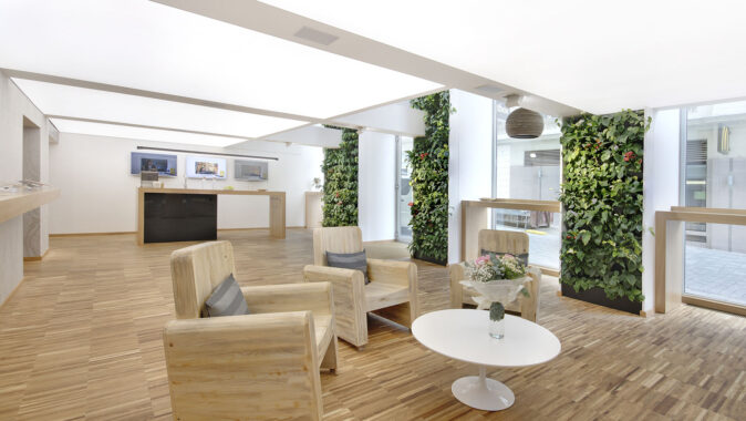 rozlehlých kancelářích působí vertikální zahrady velmi efektivně a