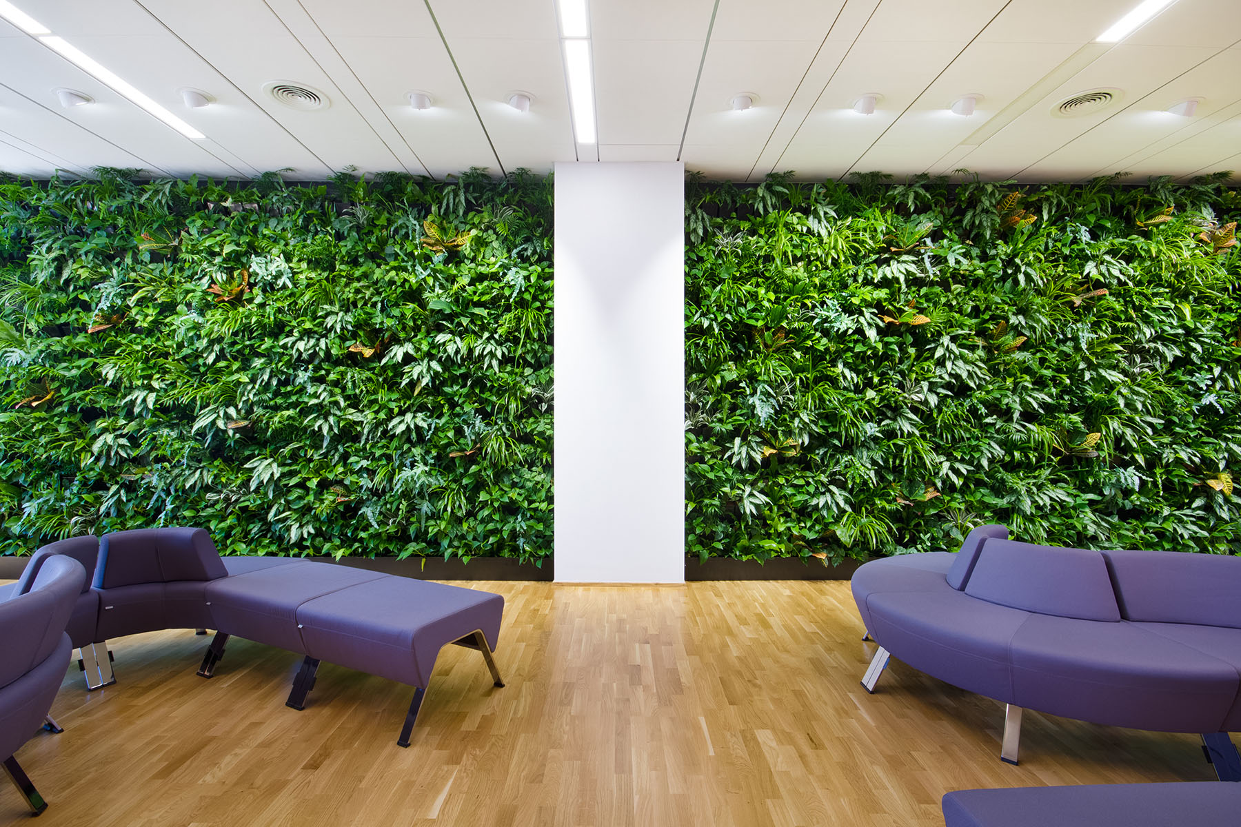 kancelářích či na univerzitách působí vertikální zahrady velmi efektivně a