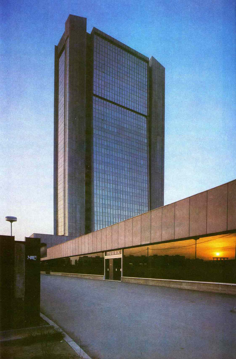 Československu skleněné závěsové panely, a to na budově Strojimportu v