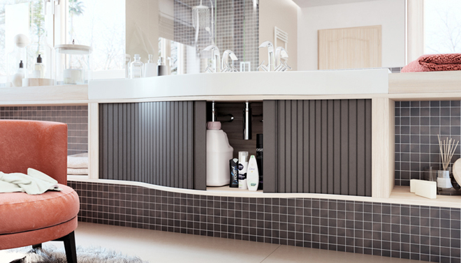 netradiční a moderní materiály, nábytkové komponenty od firmy REHAU jsou