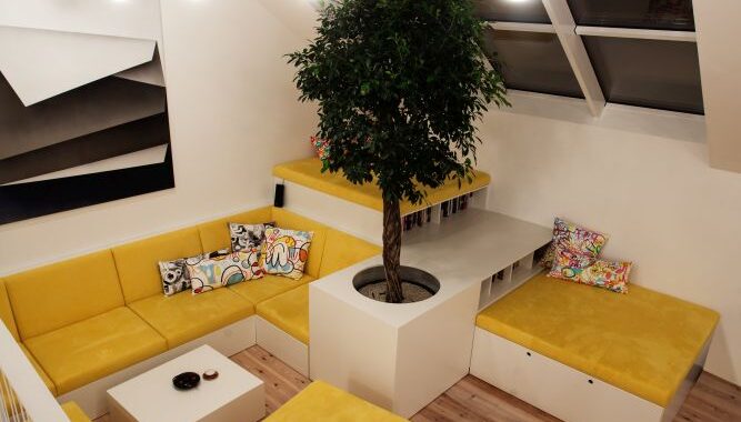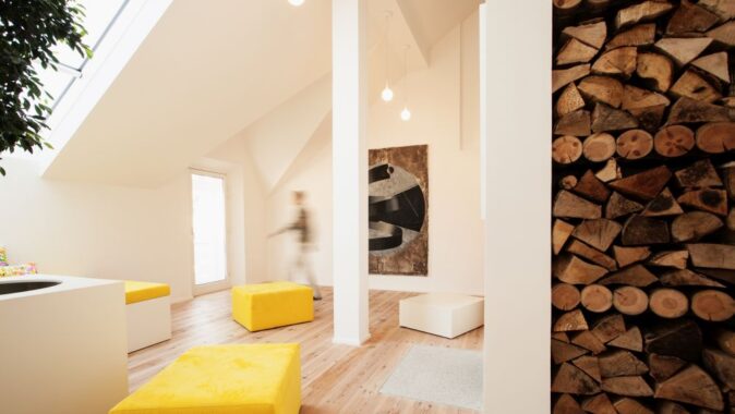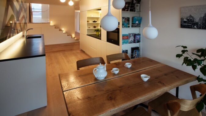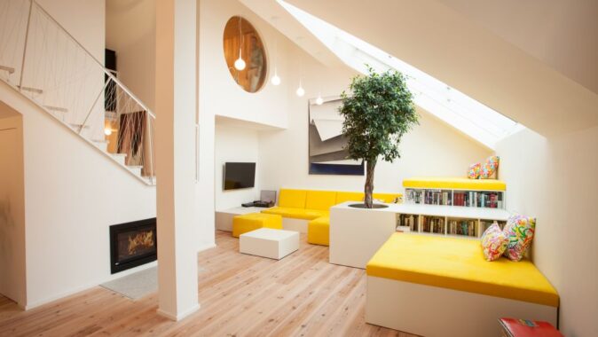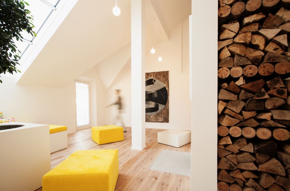 byt o ploše 200 m2 vybudovaného v 90. letech v půdních prostorách