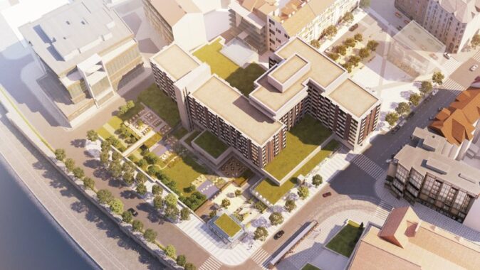 Kromě toho projekt navrhuje stavbu proskleného objektu na náměstí