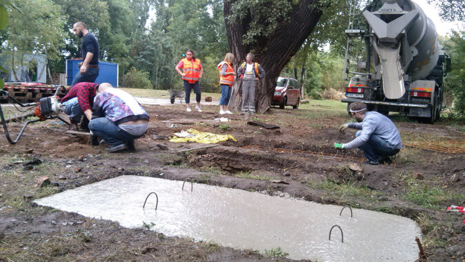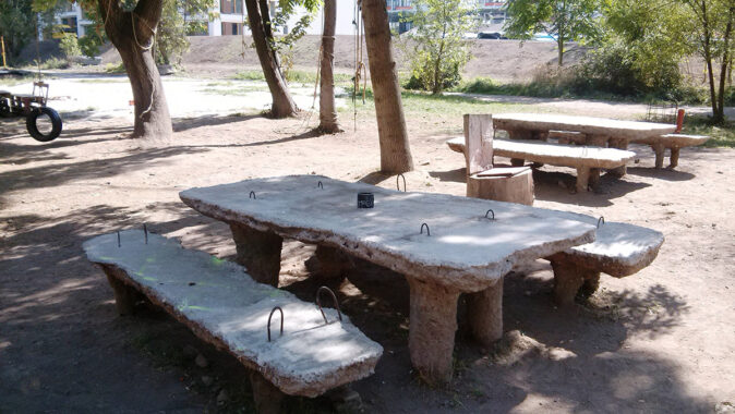 Betonu je potřeba zhruba do 0,6 m3 na stůl a 0,3 m3 na lavici. Stůl váží asi 1500 kg a lavice 700 kg, a nehrozí tak zcizení nebo devastace prvků.