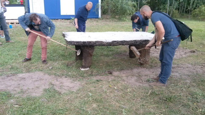 Celkem byly vyrobeny čtyři stoly a osm lavic. Vše bylo uděláno co nejjednodušeji a povrchy byly záměrně ponechány v „surovém“ stavu.