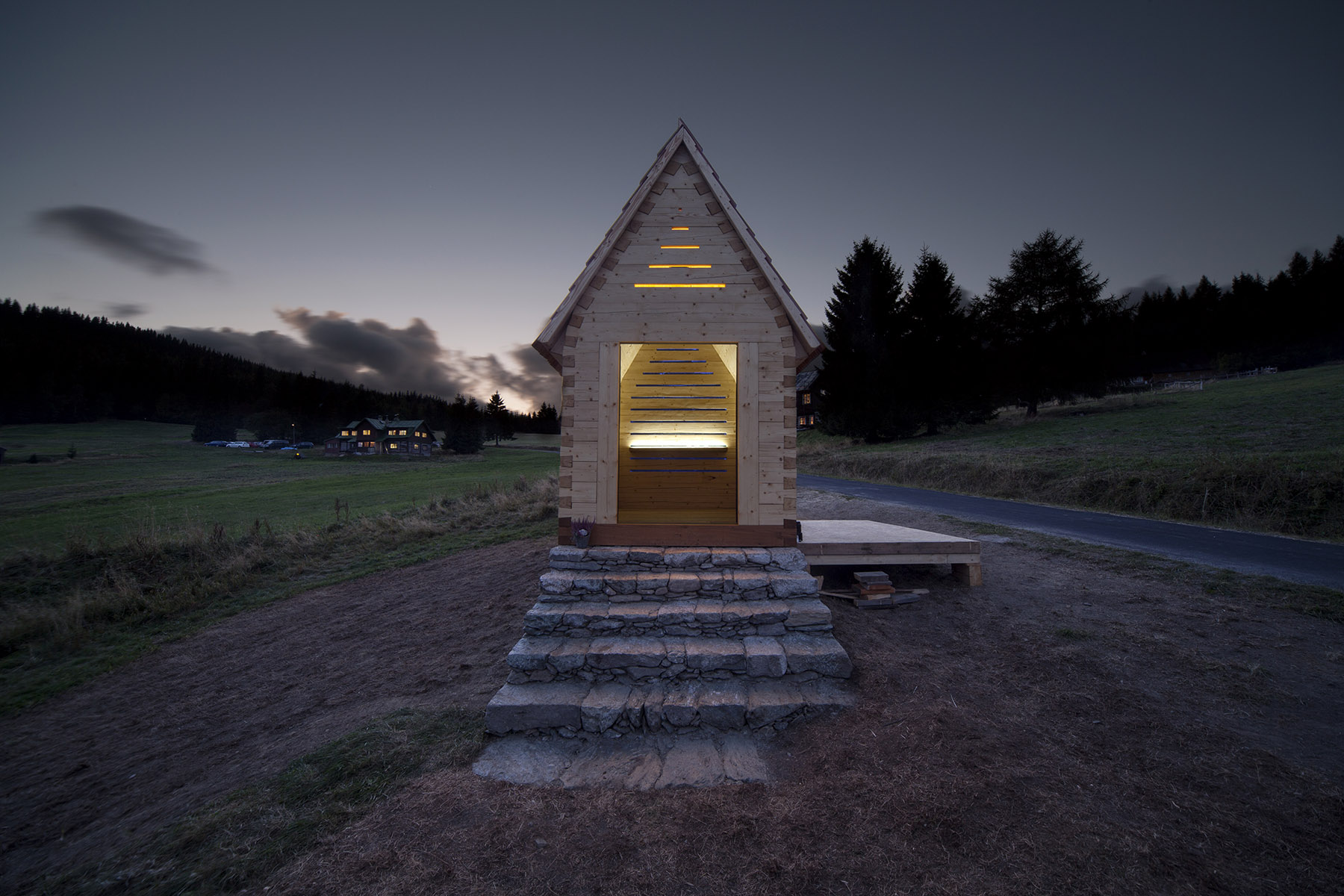 podporovatelů. Přibližně čtyři metry vysokou dřevěnou kapli se zvonem navrhla