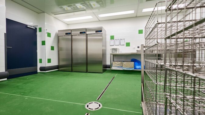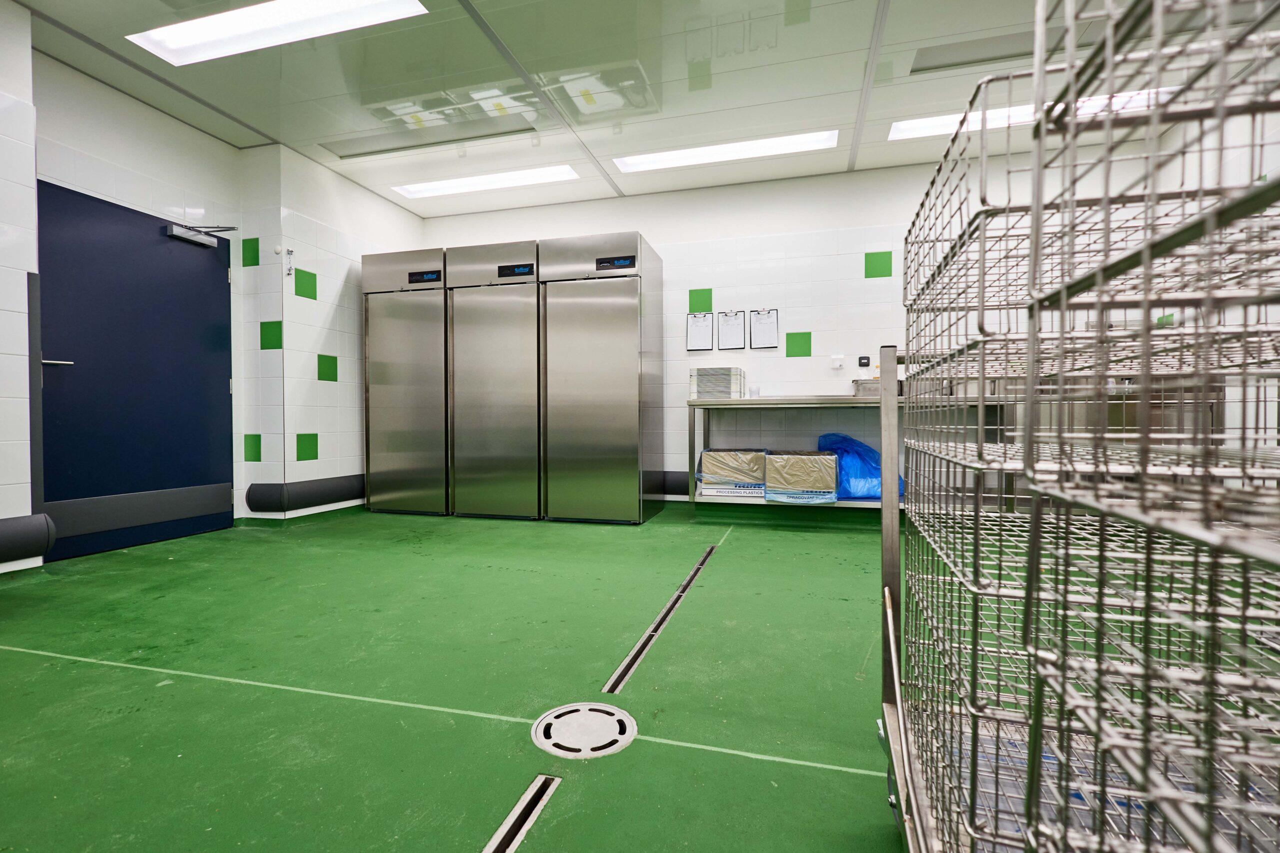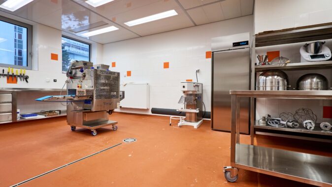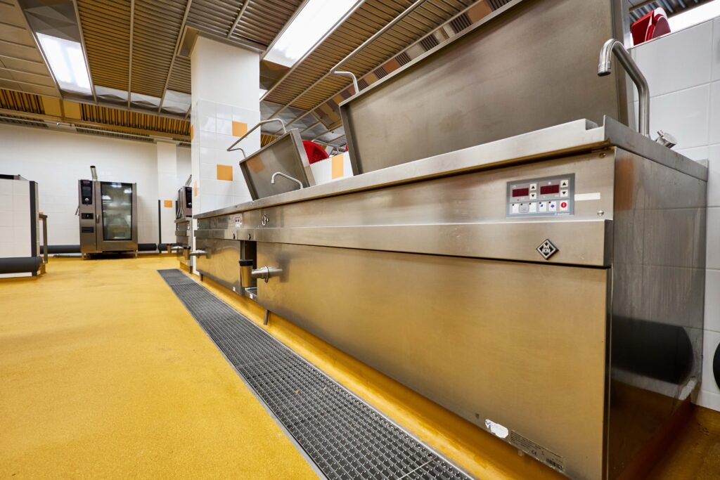 Do souvisejících provozních částí, tam kde se například jezdí s vozíky, byly instalovány nerezové štěrbinové žlaby MEA, které mají zaoblené, vyztužené hrany pro vysokou zátěž. Snadno se čistí a neomezují pohyb koleček.