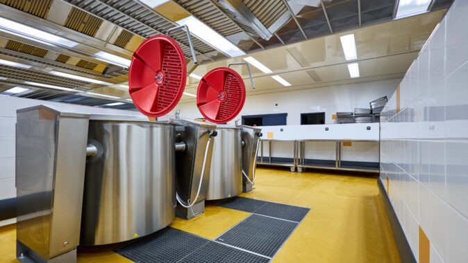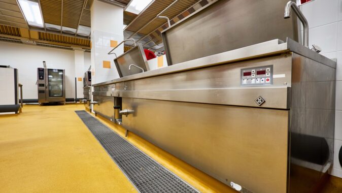 Výroba nerezových odvodňovacích van z potravinářské oceli 304 také nebyla jednoduchá. I ve složitých tvarech bylo nutné vést spádování dna žlabů do jednoho místa a současně se vyrovnávat s výškovým omezením podlahy.